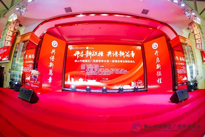 2023年3月23日,“开启新征程·共谱新篇章”佛山市顺德区广西贵港商会第一届理监事会就职典礼在佛山市顺德区容桂喜悦酒店隆重召开。典礼现场,粤桂政府部门领导、在粤各地桂籍商会、企业家、乡贤代表欢聚一堂,共议商计话发展,共在顺德创未来。
