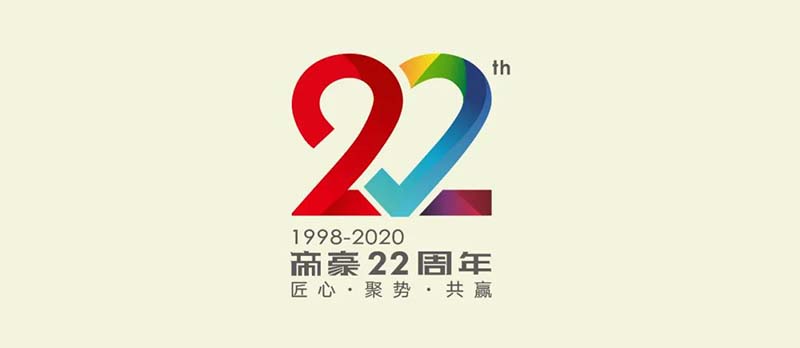 22周年徽标,颜色一半以红为主调,彰显周年庆隆重而热烈,彩虹色带年轻而活力,代表品牌发展充满活力,展望明亮的前程。徽标整体以字母“22”、“心形”“握手”为创意的出发点,通过流畅的线条和彩虹色彩进行同构演化,传达帝豪集团2020年“匠心·聚势·共赢”的发展的主旋律。