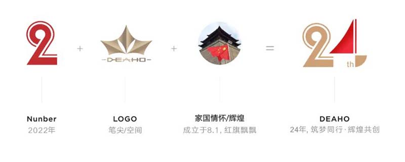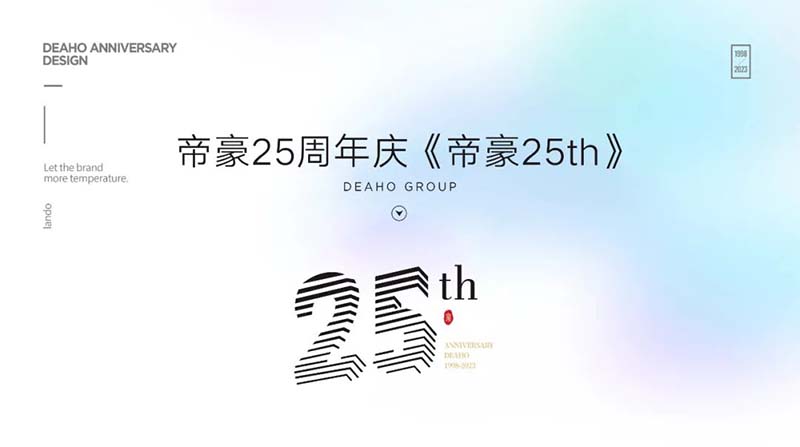 在广东帝豪装饰从1998年创立以来,在二十多年发展历程中,帝豪需要一个“符号”,来承载品牌的创业初心,传达帝豪的历史历程,提升为企业的竞争优势。于是,蓝度文化为帝豪装饰集团策划了二十二周年至二十五周年的徽标设计,并启用到品牌宣传中。