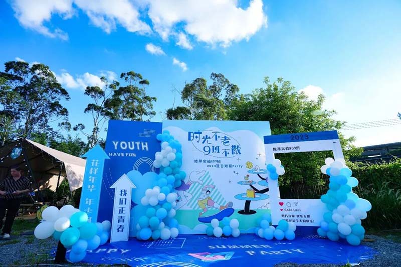 7月5日,“时光不老 ·9班不散”实验学校809班2023夏日欢聚party在北滘“森野寻趣”举办。炽热的7月,又是一个学年的结束,一同学习生活的青涩少年下学年即将分班,各自奔赴,为梦想而奋斗。在这个背景下,蓝度文化传播为809班设计策划本次聚会,为学生和家长打造一个以青春+感恩+希望为主线的欢聚party。