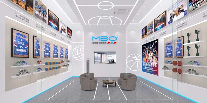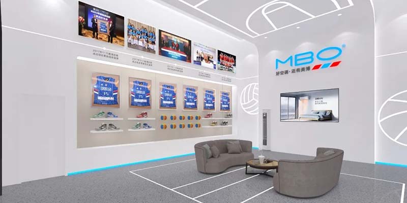 体验区打造舒适感未来感的视觉效果结合美博集团体育营销的策略,排球、篮球元素穿插其中, 展示美博“新一代、轻奢派”的产品形象,通过产品、运动元素为观者带来不一样空间深度体验。连接人、空气、美 好生活,使人与空间产生共鸣。