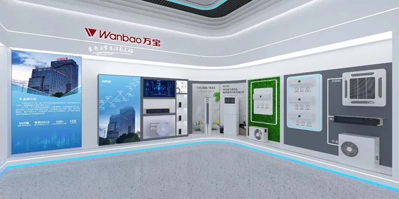 在商用空调展厅的设计中,我们以城市和楼宇的剪影形式相结合,巧妙展现了产品的商业应用场景。城市剪影象征着繁忙的都市生活,而楼宇代表了商业繁荣与发展。通过这些设计元素,我们将展品巧妙融入到商业环境中,向观众展示产品在不同场景中的多元应用。
