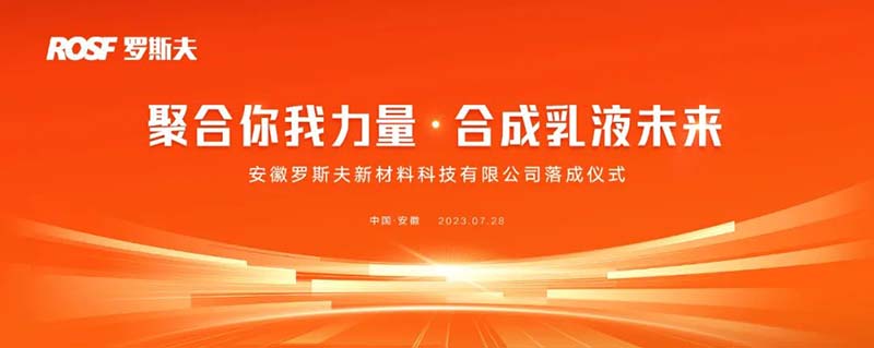 2023年7月28日上午,“聚合你我力量·合成乳液未来”安徽罗斯夫落成仪式在安徽滁州明光涂料产业园内隆重举行。在明光市市委、政协、明光经开区管委会领导、罗斯夫领导团队、罗斯夫股东代表、客户代表以及多家媒体和嘉宾的共同见证下,活动圆满成功。