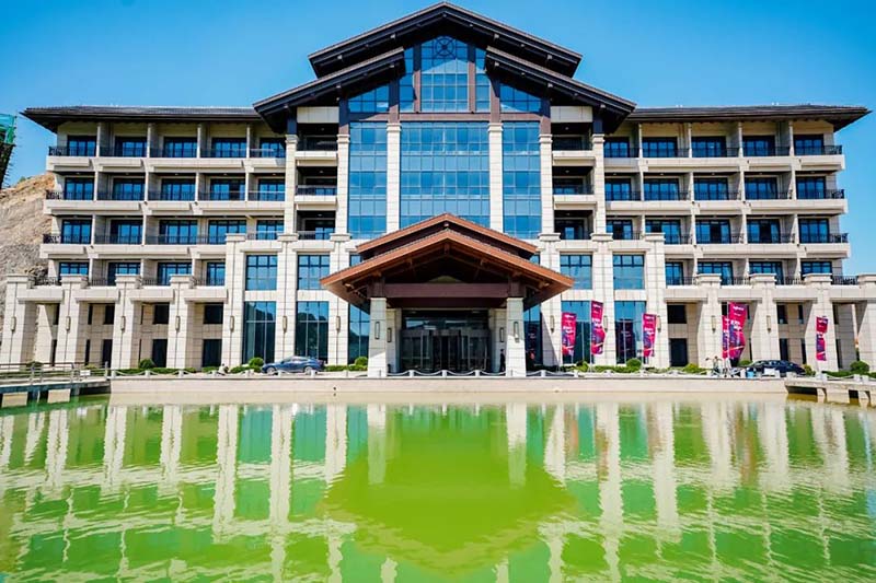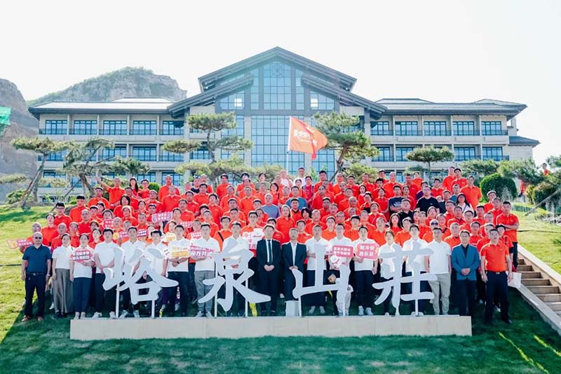 我们根据现场及主办方的需求结合峪泉山庄实况规划布局和调整布置物料,在山庄外场插上刀旗、营造浩大声势,与会者到达会议场地就能感受到热烈的活动氛围。