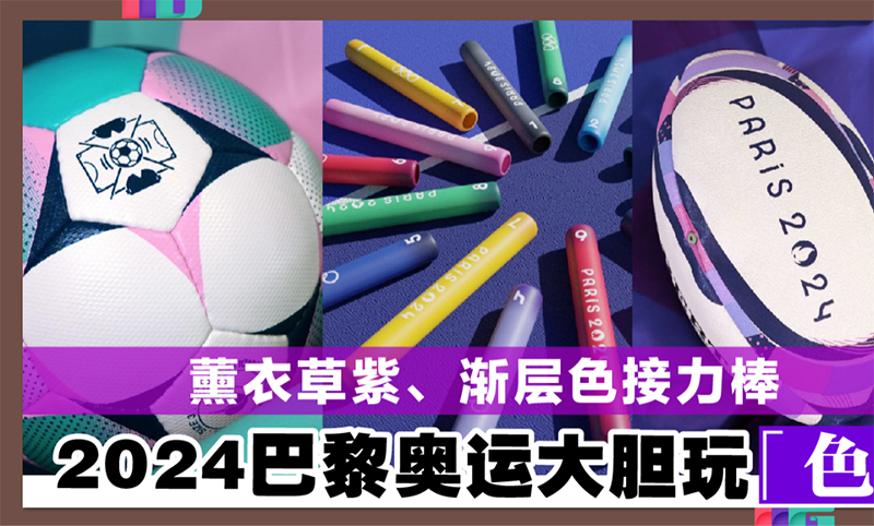巴黎奥运会的对外宣传中惹人关注的点之一,就是在奥运赛场上的大胆用色,薰衣草紫的跑道,渐变色的接力棒。