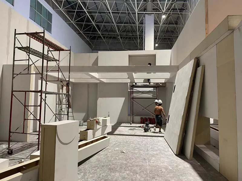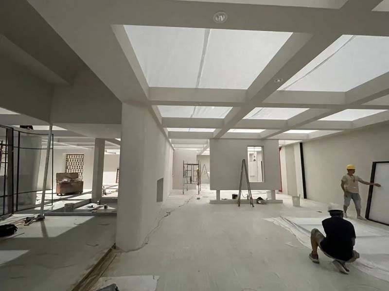 专业的蓝度施工团队对内部区域结构进行细节安装,