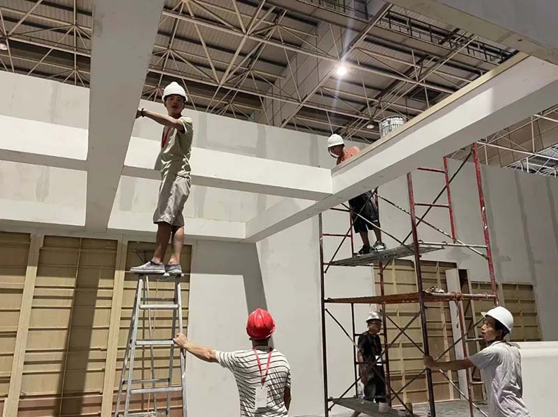 我们把定制的板材和构件搬运到场馆开展组装搭建工作。