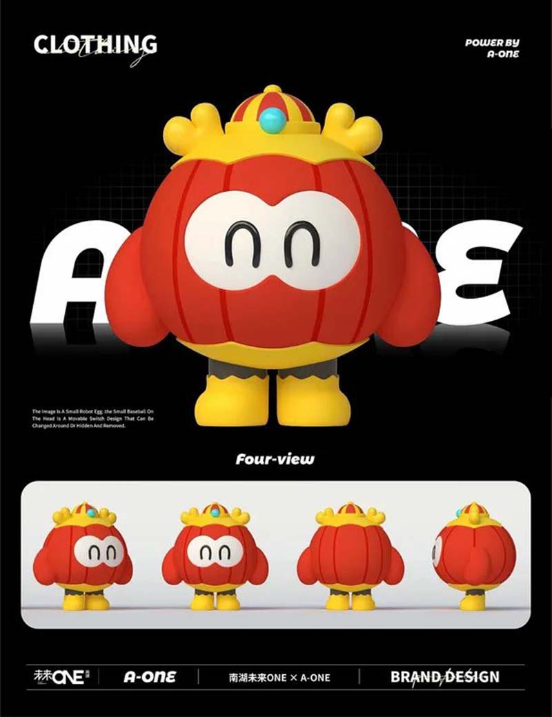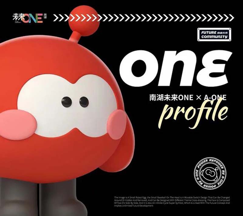 在设计上我们主体以ONE的首字母O,作为IP形象的原型,在此基础上设计一个机器蛋仔形象。面部设计为两个O并列组合、也是一个无限循环的超级符号♾️,与未来概念相结合,寓意未来无限发展。