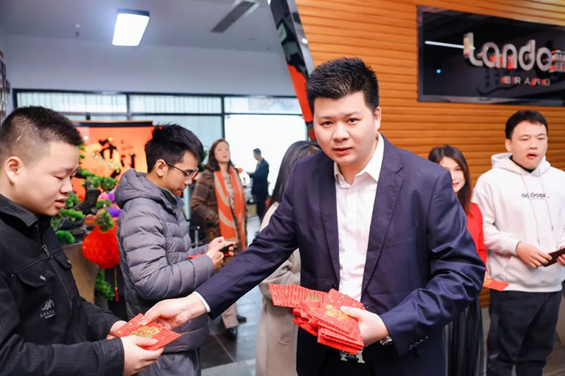 蓝度传媒创始人郭少林先生,亲自为每一位成员派发开工红包。